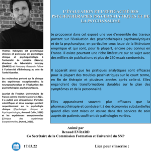 Il proposera dans cet exposé une vue d’ensemble des travaux portant sur l’évaluation des psychothérapies psychanalytiques et de la psychanalyse, en particulier ceux issue de la littérature empirique et qui sont, pour la plupart, encore peu connus en France. Il existe pourtant une riche littérature sur ce sujet avec